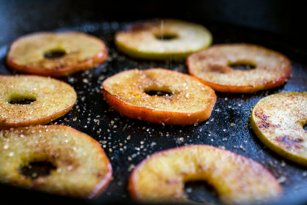 - Prepare the Apples: Core the apples and slice them into 1/4-inch thick rings. Remove any seeds.